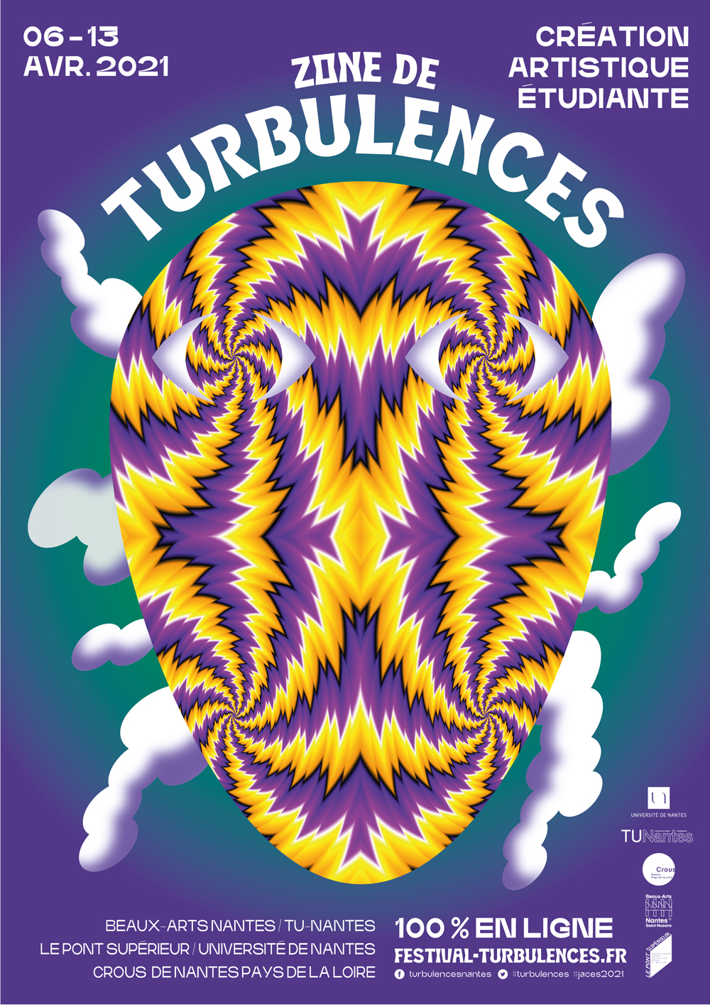 Zone de Turbulences en vue : dans un contexte pour le moins agité, le festival Turbulences se transforme et change de nom le temps d’une 6ème édition 100 % en ligne !Du 6 au 13 avril 2021, ce temps fort valorise les pratiques artistiques étudiantes, maintenues pendant cette année universitaire. L’Université de Nantes, le Crous de Nantes Pays de la Loire, le TU-Nantes, le Pont Supérieur et l’école des Beaux-Arts Nantes Saint-Nazaire se rassemblent une nouvelle fois, pour partager cette agitation créative et soutenir l’émergence de demain.